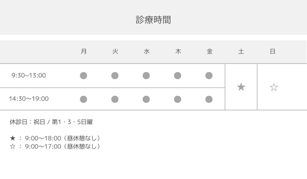 9:00~18:00(昼休憩なし)